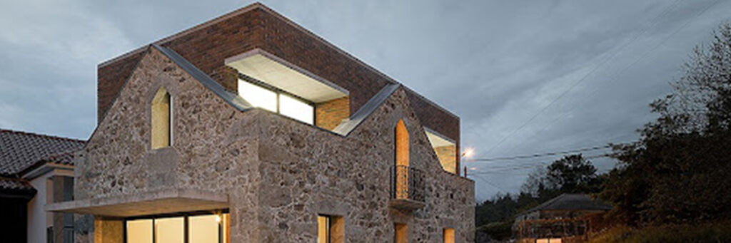 La modernidad ajustada a las ruinas de una casa de piedras.